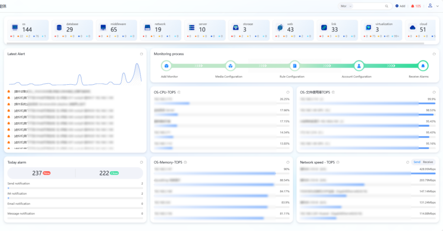 - Qualitative leap in O&M system: Through intelligent O&M methods such as comprehensive IT asset inventory, full-stack monitoring, and real-time alarms, a sound and flexible mature O&M system has been successfully established, completely replacing the traditional “fire-fighting” O&M model. O&M response and disposal efficiency has been increased by 10 times, and enterprise O&M labor and management costs have been reduced by over 50%.