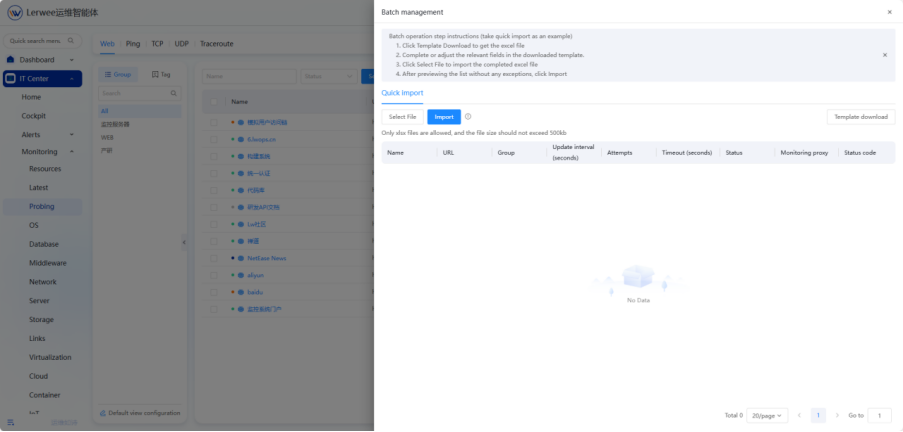 - Web detection supports batch import of status codes, greatly improving initialization efficiency.
