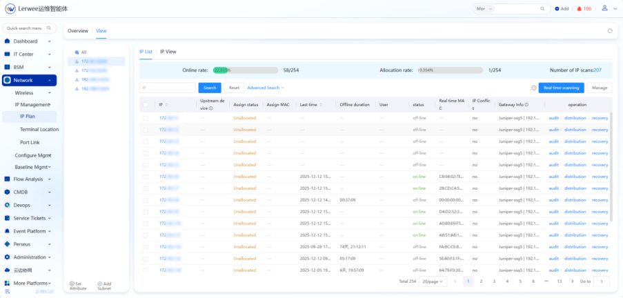 - A new IP scanning overview page is added, supporting Fping and Fping+ARP scanning methods for more accurate online status judgment;