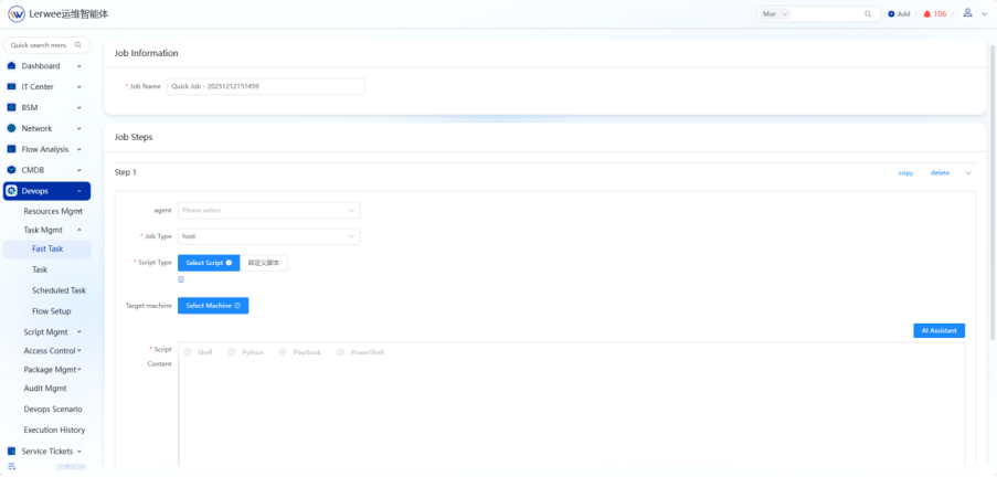 - Quick Jobs: Support custom script editing to unleash the creativity of operation and maintenance personnel;