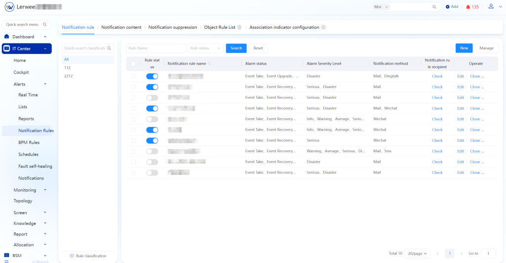 Alert Notification Delivery Rules Configuration: Choose from multiple delivery methods including email, SMS, WeChat Work, DingTalk, and custom scripts. Notifications will be automatically pushed when the alert conditions are met.