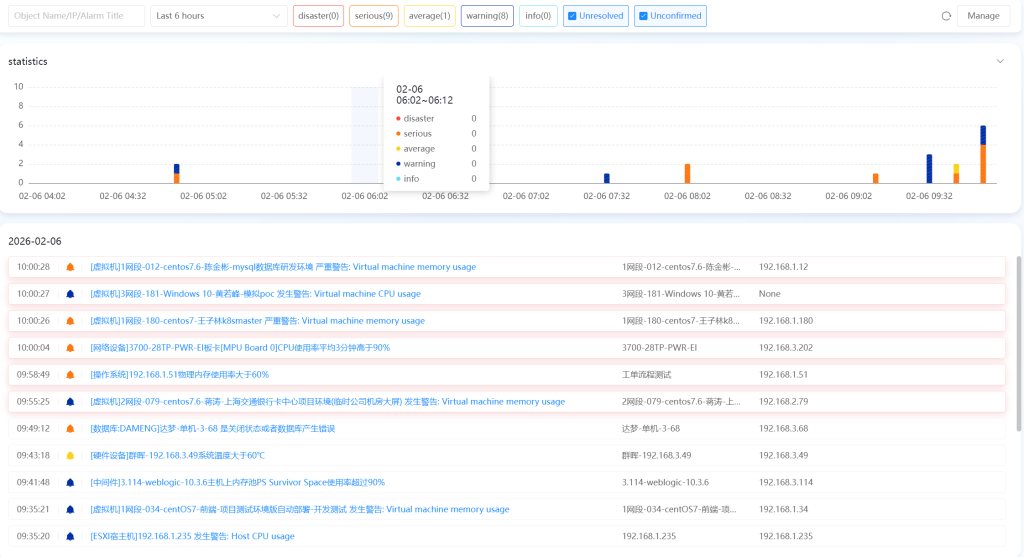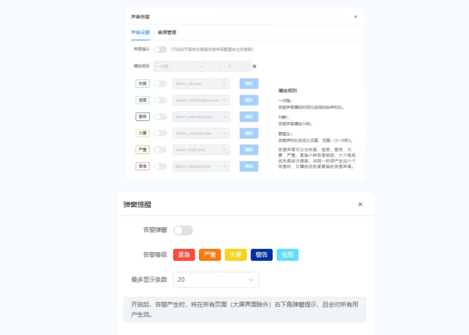 Multi-period and multi-level alert statistics, and real-time display of the latest alerts.