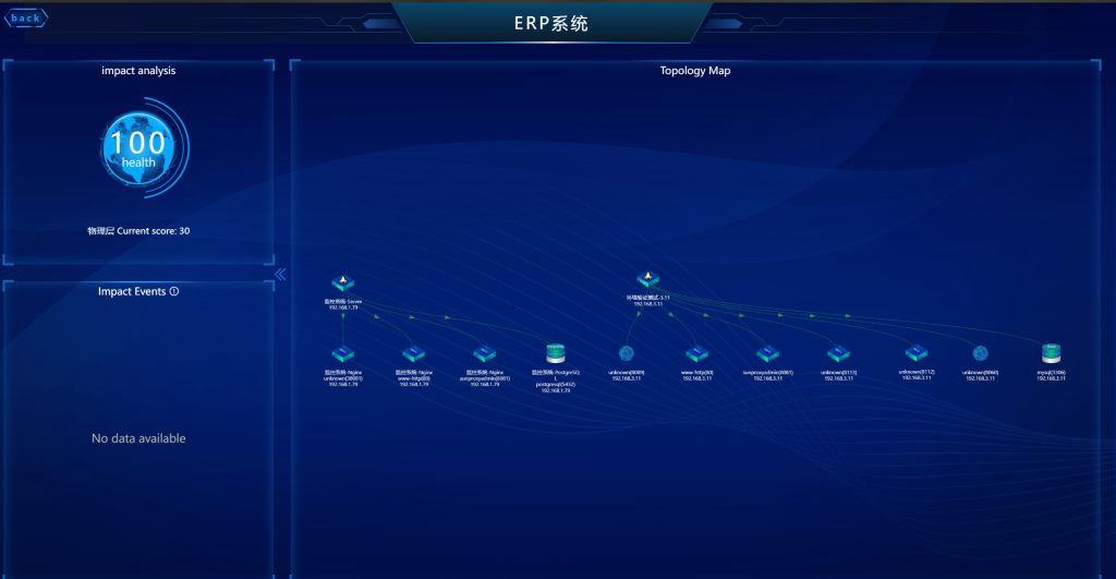 Click to view in-depth business system impact analysis, related impact events and topology charts, and identify fault nodes via the topology charts.
